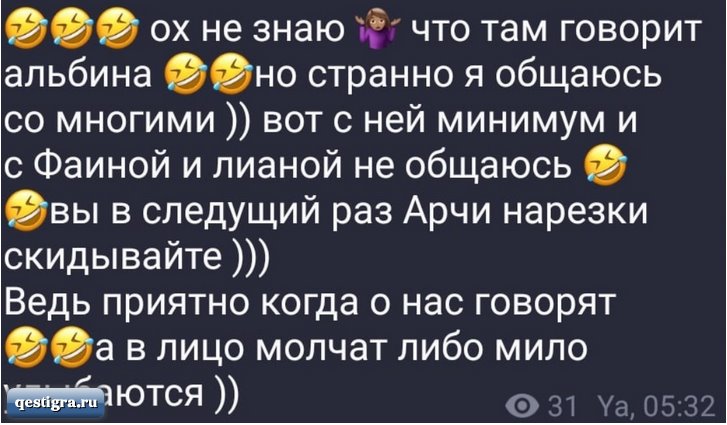 | Захарова нашла нового врага на Поляне - Валиуллину Яна Захарова чётко разделила участников Дома 2 на тех, кто ей нравится и подходит для хайпа и общения, и всех остальных, массовку, которая не стоит её внимания. Нацепив корону при помощи руководства реалити-шоу, Захарова чувствует себя на проекте вольготно и сдружилась с Кристиной Бухынбалтэ, с которой вместе проводит время в ночных клубах. Так как Кристина постоянно против кого-то выступает на Лобном, Захарова нашла нового врага на Поляне - Валиуллину, потому что Альбина говорит Кристине правду в глаза и за словом в карман не лезет. По словам Альбины, на неё обозлились Кристина и Яна, потому что Валиуллина защищает Лиану Осипову и нашла аргументы, чтобы девушку не поливали грязью. Как мы уже писали на шлоке, Кристина исподтишка набросилась на Лиану, узнав, что девушка ходила с Грантом в ванную комнату. Обсуждение этой темы увидим в эфирах 01.03.2022. Захарова и Бухынбалтэ начали травить Лиану, в Альбина её поддержала. Наверное, не Захаровой говорить о том, кто из участниц ведёт себя достойно, а кто нет. Не за горами тот день, когда сценаристы реалити-шоу поднимут все нарезки с её проектными романами и запроектными связями. Сумеют ли Бухынбалтэ и Захарова вдвоём закрыть Альбине рот? Автор: Макс Полянский schlock.ru Новости из дома 2 от гестигра qestigra | |