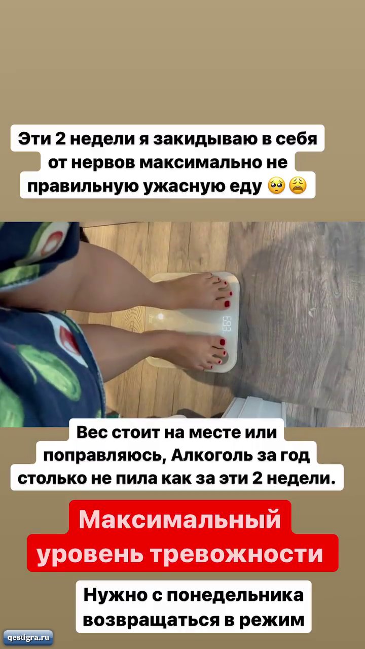 Подкручивая весы, Шуня что-то перемудрила Сколько там у неё 69,3? Да у неё одна нога столько весит. А вообще она описала обычное своё состояние: лежать на кровати, всё лень и все бесят. Вставать лишь для того, чтобы побухать. Разве когда-то было по-другому?